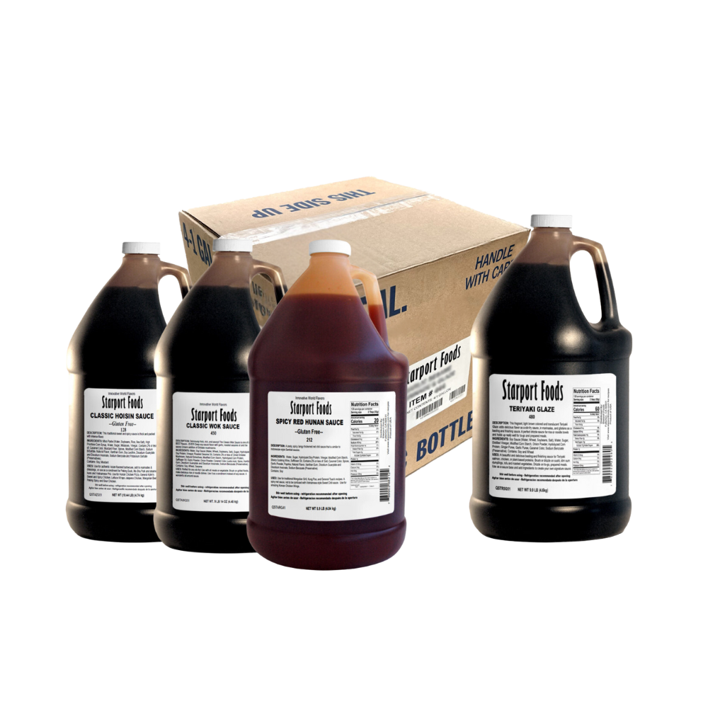 The Chinese Classics Box features four essential sauces used across Chinese restaurants, takeout kitchens, noodle shops, sushi bars, and Asian fusion menus. These sauces are thick, glossy, consistent, and formulated for professional kitchens. Perfect for stir-fries, wok cooking, marinades, BBQ, sushi finishing, dipping, and prepared meals.